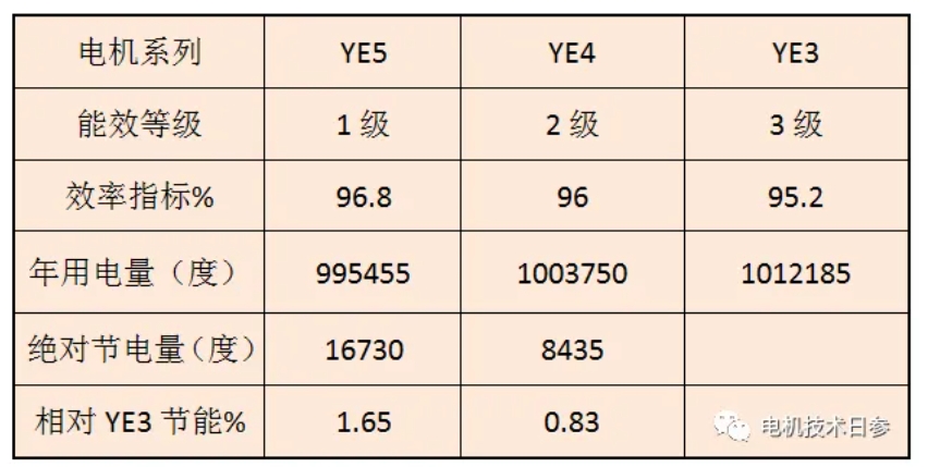 From the data in the table, we can see that the relative energy saving seems to be small, but the absolute power saving is a very considerable number, especially for large-sized motors, the absolute energy saving effect will be more obvious.